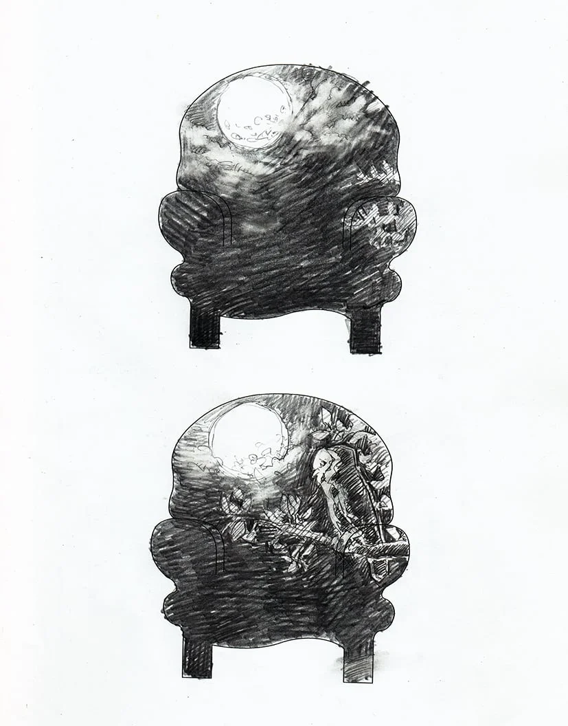 La pieza está conformada por dos proyecciones simultáneas: una sobre una silla –realizada de cartón y madera, y recubierta con una mezcla de serrín y cola– y otra en la pared detrás de la misma. La proyección (3d mapping) sobre la silla ofrece la narrativa principal de la pieza mediante una animación de simbología zoomórfica. Cada animal delimita un capítulo histórico y su empoderamiento sobre la silla.